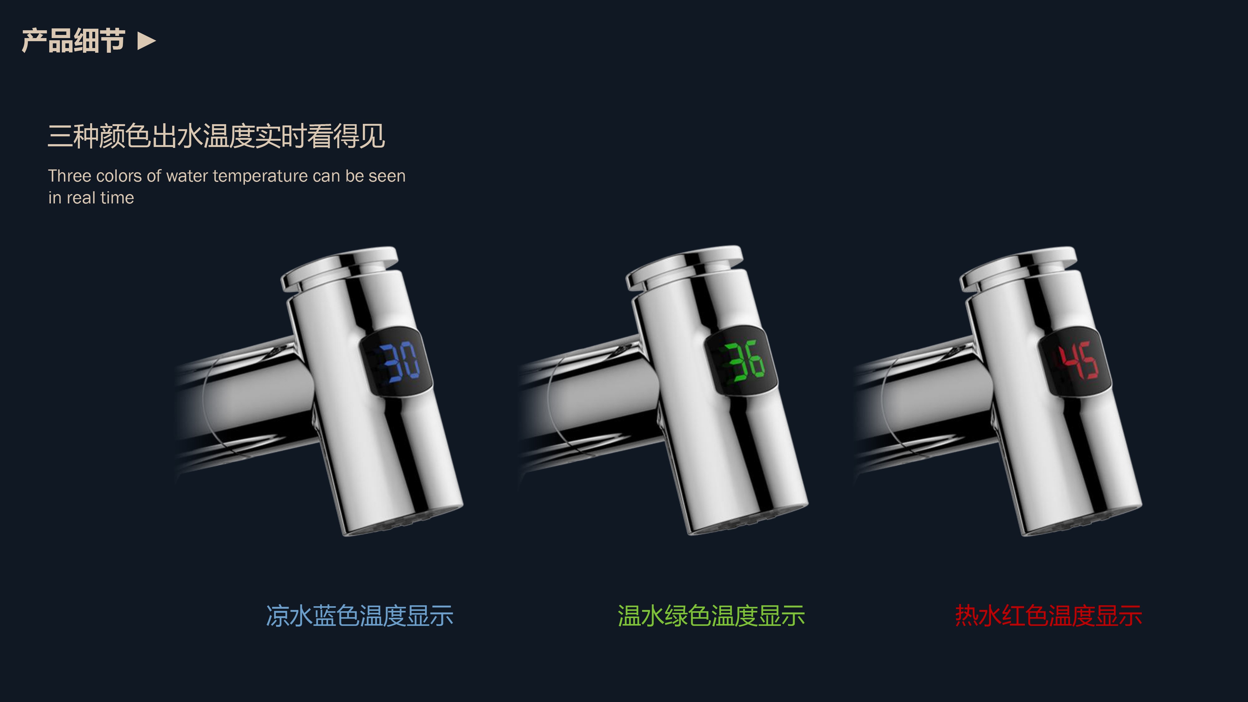 即時顯示溫度,安全防燙;日常洗頭利器,抽拉出水輕松洗;按壓切換兩功能水花;適合4寸3孔安裝臺面
