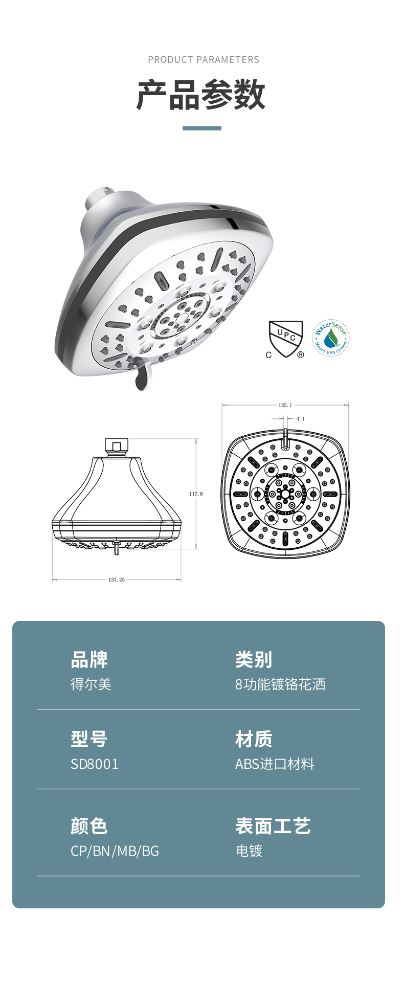 SD8001 8功能蓮蓬頭
