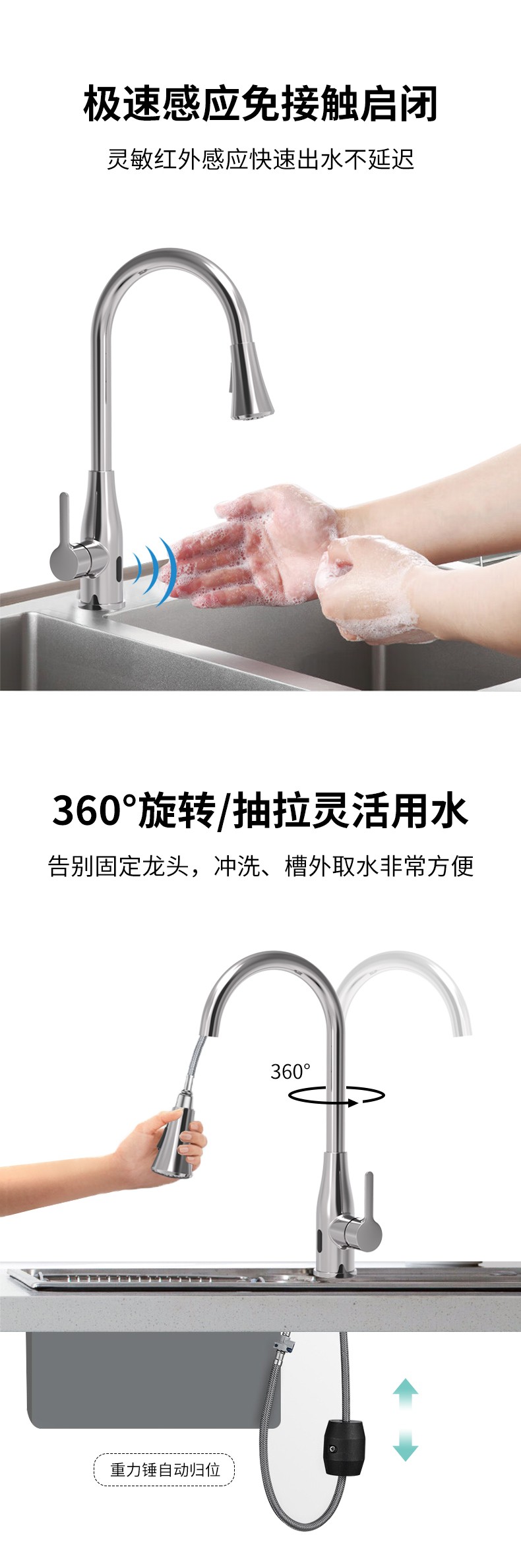 FK8337 感應雙控廚房抽拉龍頭
